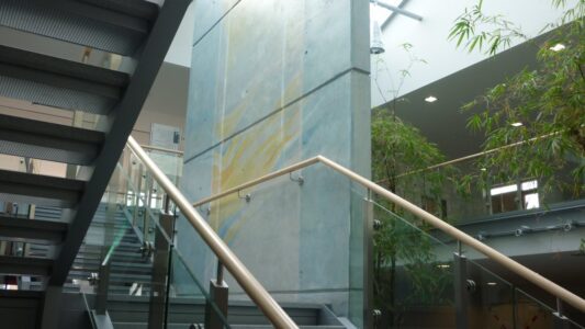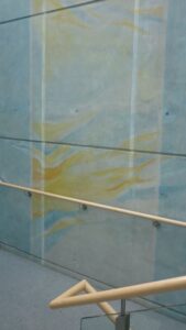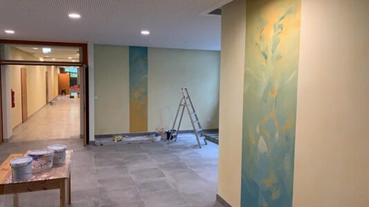 Die Wirkung der Farbe ist nicht zu unterschätzen. In therapeutischen Einrichtungen sollte man das, was in den Räumen geschieht behutsam unterstützen, denn die Farbe beeinflusst das Seelenleben stärker als wir denken. In der Geburtenstation eines Krankenhauses beispielsweise muss eine Stimmung der intimen Geborgenheit entstehen. In Schulen, Kindergärten und öffentlichen Einrichtungen ist es natürlich auch wichtig Gesichtspunkte zu entwickeln, die den Arbeitsvorgängen in den Räumen entsprechen. Meine Erfahrung hat gezeigt, dass es sehr sinnvoll und effektiv ist, die Menschen, deren Umgebung farblich neu gestaltet werden soll, nicht nur in die Konzeption aktiv einzubinden, sondern sie auch in der praktischen Ausführung mit einzubeziehen. Das ist auch eine schöne Möglichkeit mit der Architektur und den Räumen „zusammenzuwachsen“.